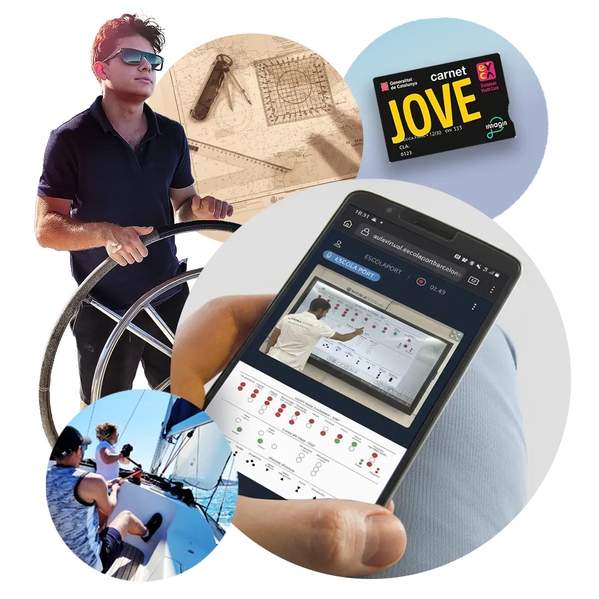 Incluye el curso teórico online, las prácticas de seguridad y navegación y las de radio. Prácticas las harás en el Port Olímpic de Barcelona.